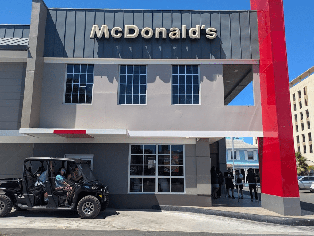 Near the hotel is a McDonalds’, and I went across the road to check it out. Americans in off-road buggies rolled around the drive through, and inside there were dozens more.