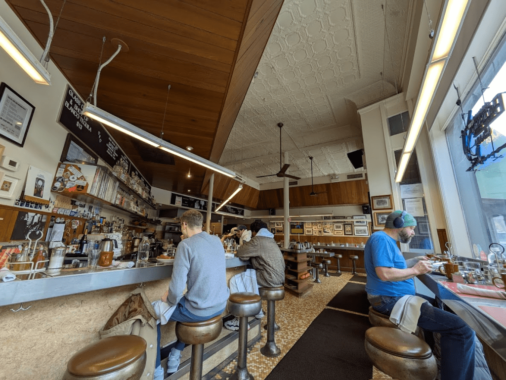 I lunched at a spot called Dove’s Luncheonette, and oh my it was sublime. Glazed clay coffee mugs. Retro-futuristic stools beneath a street-facing breakfast bar. Vinyl records sounded through the system. Fresh orange juice, served on lace drip-matts. Excellent service, and Southern-inspired Mexican dishes.